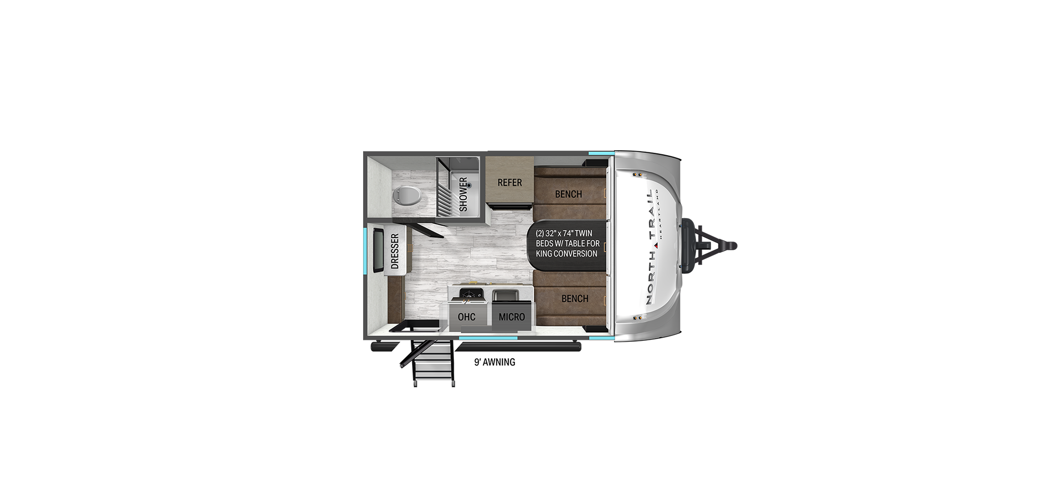 The 2026 Heartland North Trail Ultra Lite travel trailers strike a smart balance between rugged durability and residential comfort. Built for easy towing with half ton trucks and SUVs, these trailers feature a wide track suspension and lightweight construction for a smooth, confident ride across varying terrain. Heartland’s TuffShell construction adds serious strength with vacuum bonded laminated walls and a reinforced roof system, giving the North Trail a solid, dependable feel without unnecessary weight.
