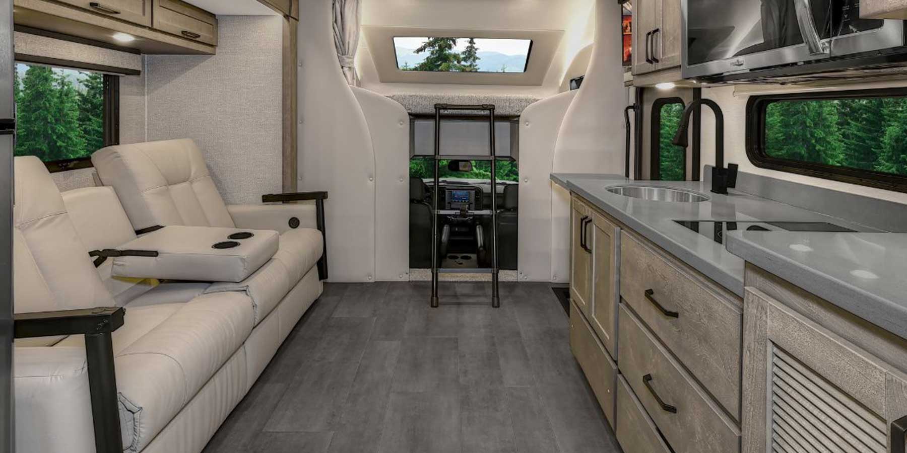Inside, the Veracruz offers a surprisingly upscale retreat with handcrafted hardwood cabinetry, solid-surface countertops, stainless steel appliances, and residential-style furnishings. Smart floorplans provide comfortable sleeping areas, full bathrooms, and well-equipped kitchens, while modern technology, safety features, and integrated entertainment systems ensure a smooth and comfortable journey wherever the road or trail leads.
