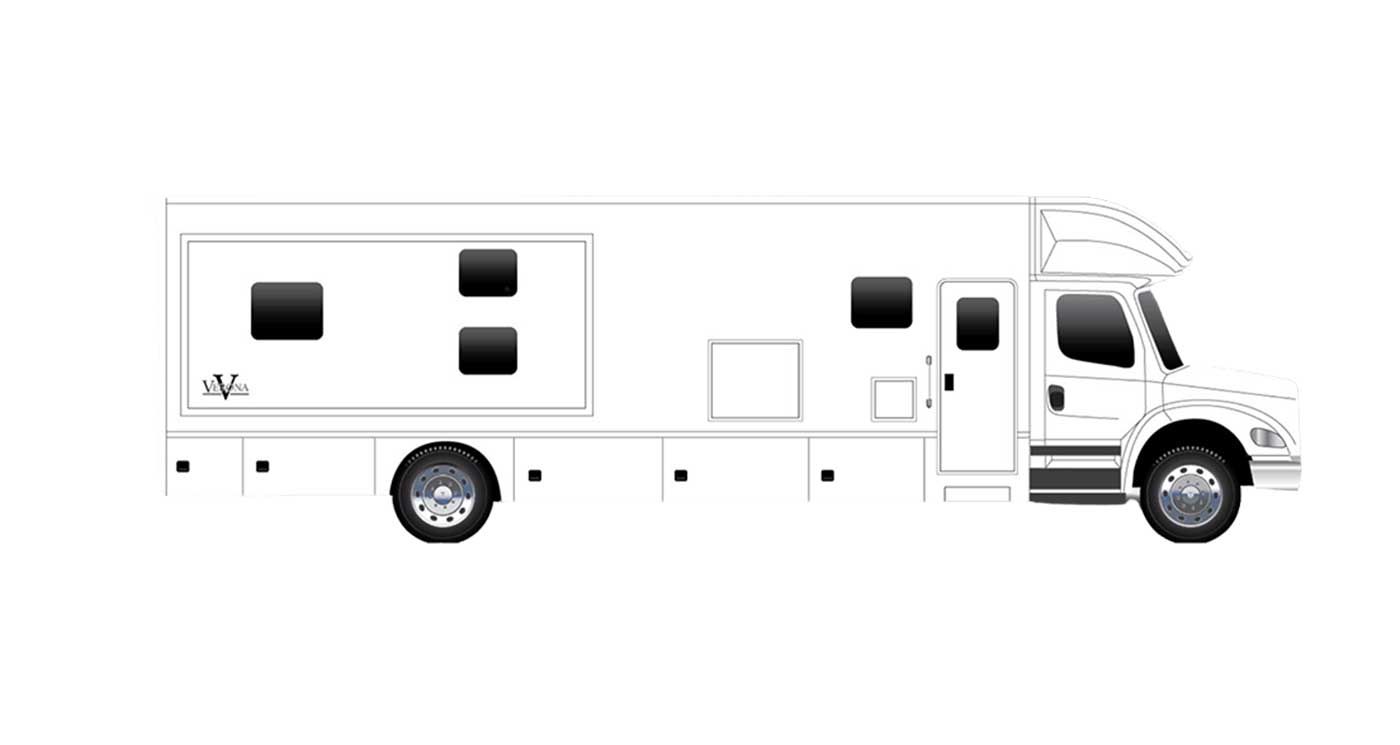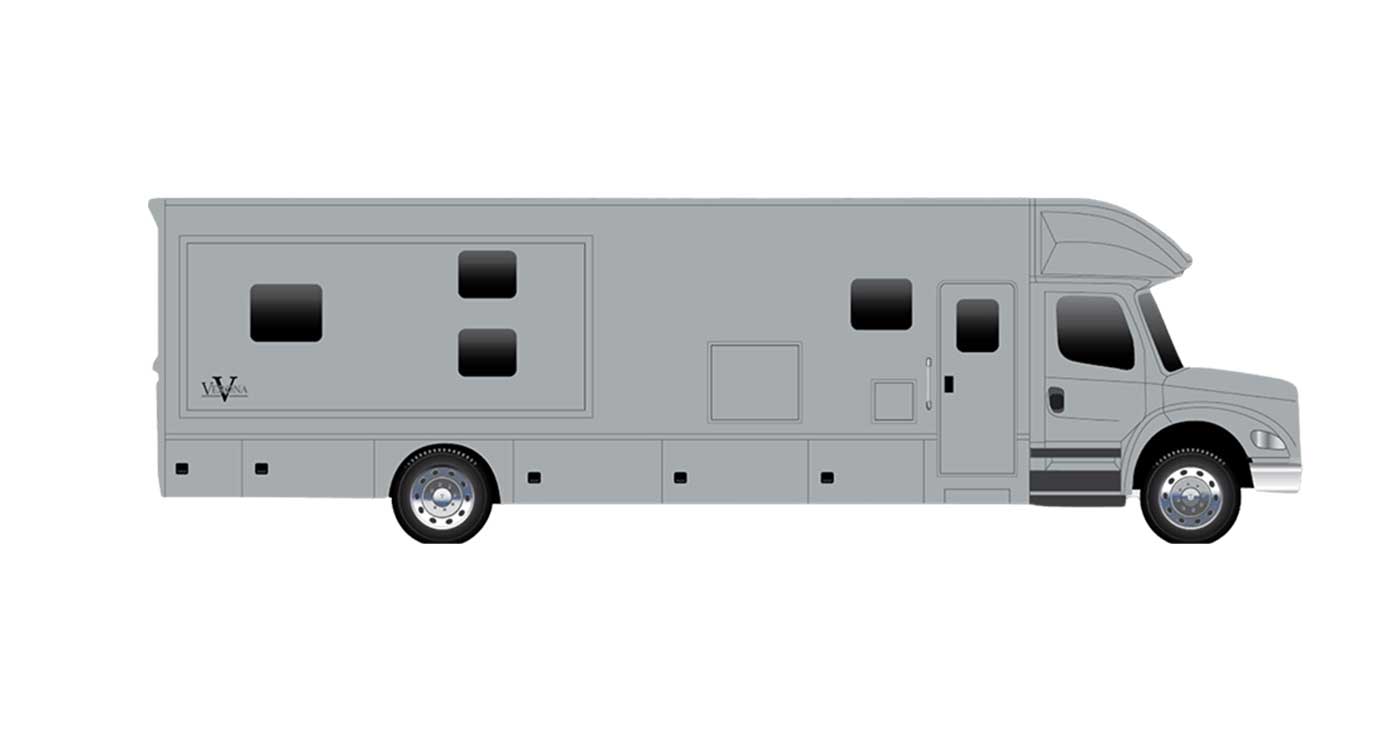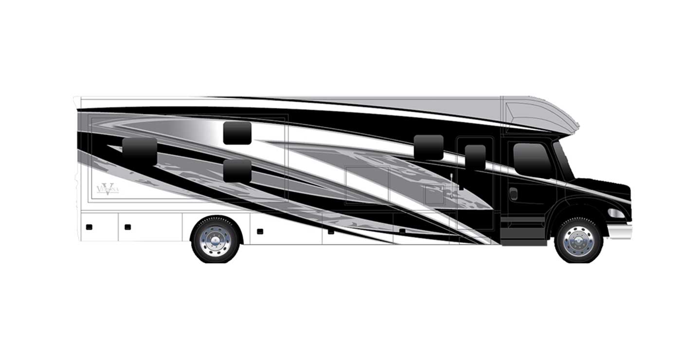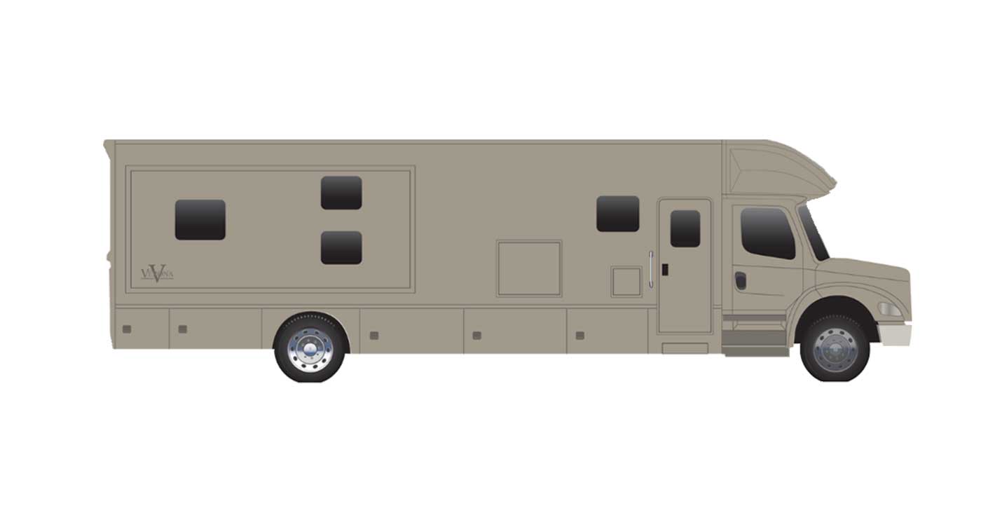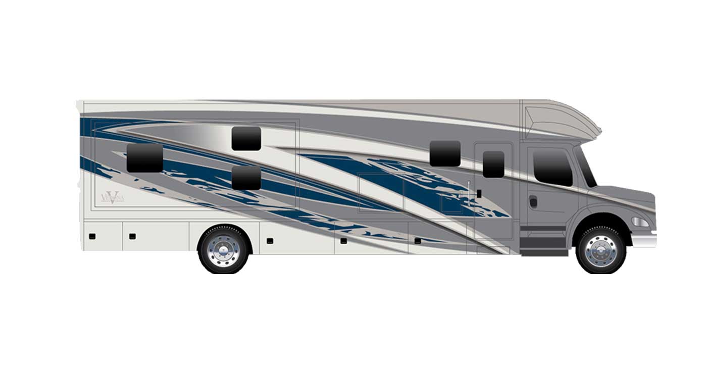 Inside, the Verona feels polished and livable, with handcrafted hardwood cabinetry, solid-surface countertops, residential appliances, and a spacious layout designed for comfort. Modern tech like multiplex lighting, premium audio, solar prep, and an 8.0kW generator pairs with generous storage and upscale exterior touches like full-body paint, power awnings, and frameless windows, making the Verona a stylish and capable Super C for any kind of journey.