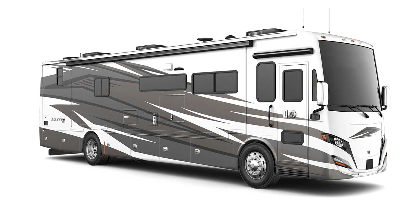 Designed for extended travel and everyday convenience, the Allegro RED includes Aqua-Hot hydronic heating, dual air conditioners with heat pumps, an Onan Quiet Diesel generator, solar prep, and a modern multiplex control system with app connectivity. The master suite offers a king bed, ample wardrobe space, and washer and dryer prep, while select floorplans add a rear bath and mid-coach half bath. With full-body paint, abundant exterior storage, and optional Wi-Fi, the 2026 Allegro RED is ideal for both luxury vacations and full-time living. Visit North Trail RV Center in Fort Myers to explore available floorplans and experience this exceptional diesel motorhome in person.